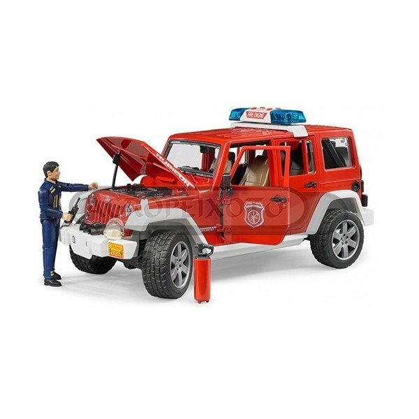 Jeep com tejadilho de 2 peças amovível, capot que se pode abrir e assim permite a visualização detalhada do bloco do motor. A porta da bagageira e as outras portas podem ser abertas e o acoplamento do reboque pode ser removido. Os eixos são dirigíveis, oferecendo assim um controle extremamente fácil do veículo. Inclui suspensão todo terreno nos eixos e os pneus são perfilados. Para além da luz de emergência no tejadilho, inclui três sons de sirene e o som do ruído do motor. A figura do bombeiro incluída, está totalmente equipada para coordenar todas as missões, contendo ainda um extintor e um rádio.