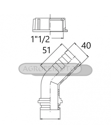 Racord Plastico Curvo 45º Diam. 40mm P/Porca 1"1/2